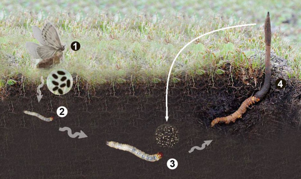 Lý giải hiện tượng cộng sinh giữa ấu trùng và nấm có thể hiểu đơn giản là vào mùa đông, khi nhiệt độ xuống thấp, loại nấm này ký sinh vào bên trong cơ thể sâu để hút hết chất dinh dưỡng. Sau khi sâu chết đi, ấu trùng mới phát triển và chờ mùa hè đến để thoát xác trồi lên mặt đất. Sau khi vươn lên khỏi mặt đất, nó phát triển như một ngọn cỏ nhỏ và từ đó hình thành đông trùng hạ thảo.