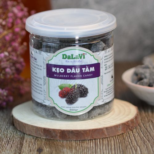 Kẹo dâu tằm được chế biến từ thành phần chính là hương dâu tằm và những quả dâu tằm tươi, sản phẩm có mùi thơm, ăn dai dai, vị chua chua ngọt ngọt rất kích thích. Sản phẩm được cung cấp bởi DaLaVi – một thương hiệu lâu đời về đặc sản Đà Lạt